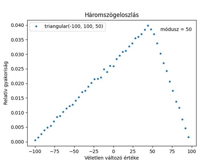 A kapott értékeket ábrázolva vizuálisan is ellenőrizhetjük, hogy háromszögeloszlásról van szó.